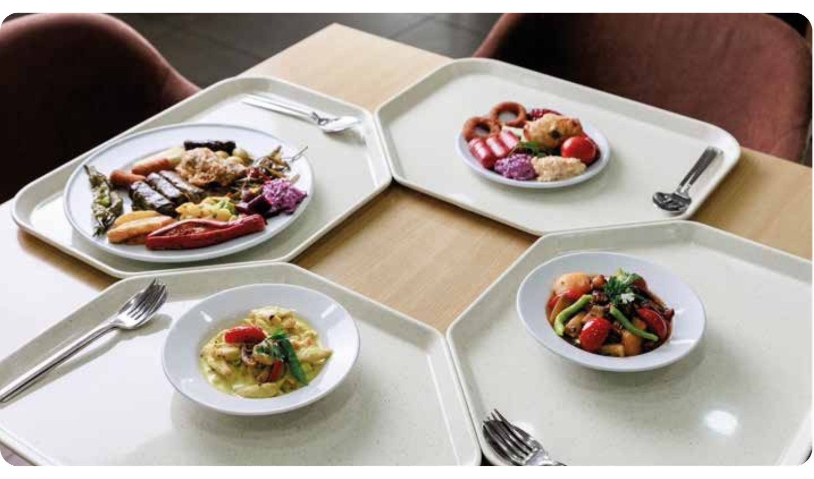 As bandejas para restaurantes são projetadas para suportar o uso intenso e atender às normas de segurança alimentar. Modelos como as bandejas RUBY e DECO são ideais para ambientes de alta rotatividade, oferecendo resistência a impactos e facilidade de lavagem.