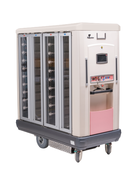 Nos últimos anos, hospitais em todo o mundo têm adotado um novo sistema de distribuição de alimentos, elevando os padrões de qualidade alimentar para seus pacientes. Esses sistemas de carros térmicos hospitalares permitem que temperaturas quentes e frias sejam mantidas na mesma bandeja até chegar aos pacientes, preservando a qualidade dos alimentos em termos de apresentação, temperatura, aroma, sabor e textura.[3]
